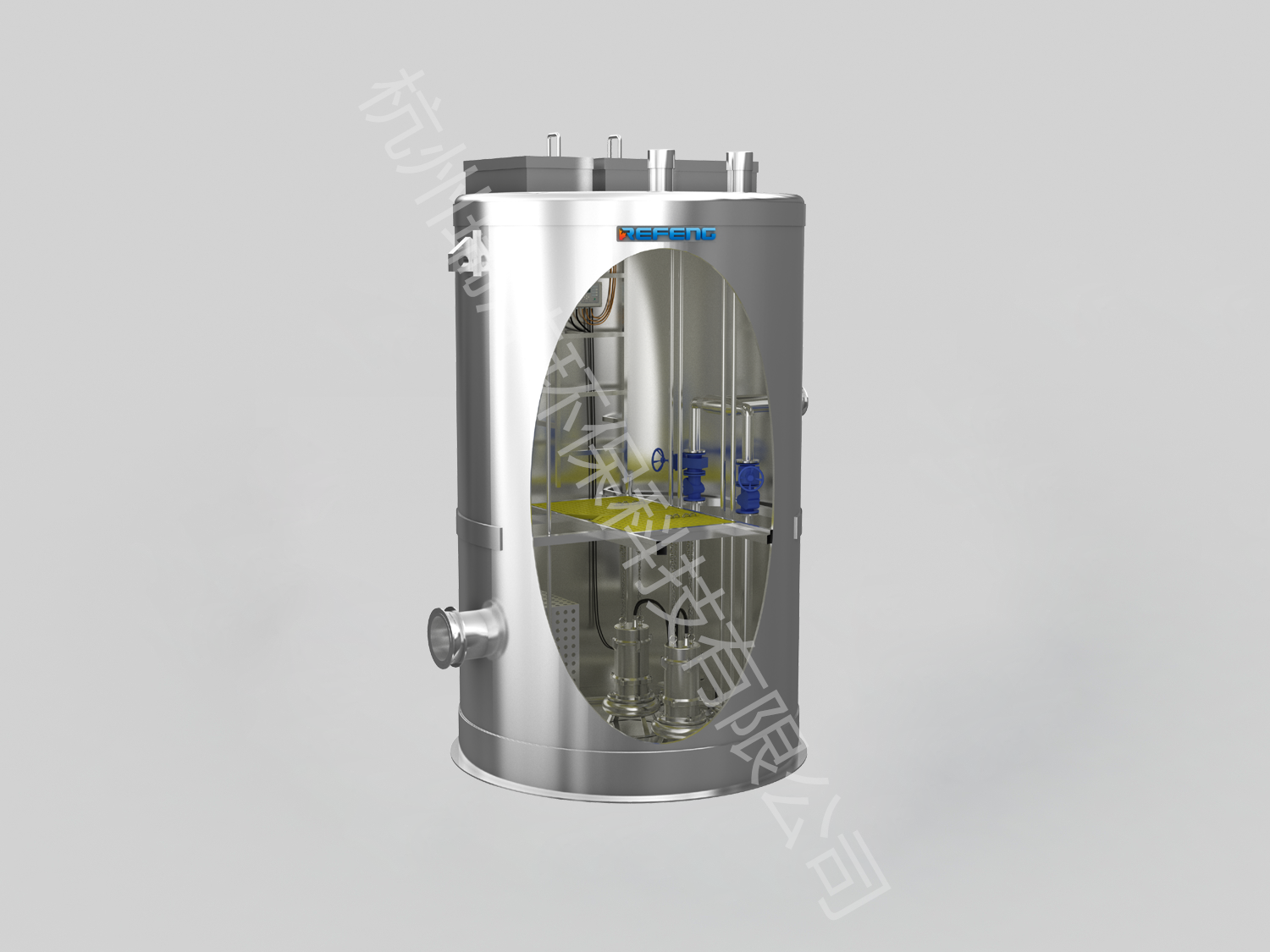 湿井泵站通过自动耦合装置将泵固定在井简底部,泵完全浸没在介质中,内部可配置检修平台,便于维护水泵及阀门组。所有部件全部在工厂内制作完成及测试,使现场安装时间最小化。适用于水泵功率最高达220KW,最多4台泵的自耦立式预制安装。