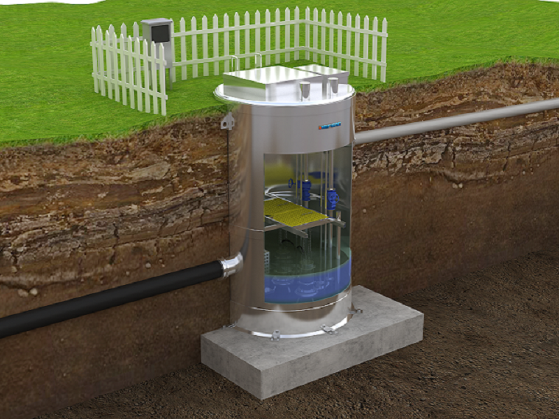 湿井泵站通过自动耦合装置将泵固定在井简底部,泵完全浸没在介质中,内部可配置检修平台,便于维护水泵及阀门组。所有部件全部在工厂内制作完成及测试,使现场安装时间最小化。适用于水泵功率最高达220KW,最多4台泵的自耦立式预制安装。